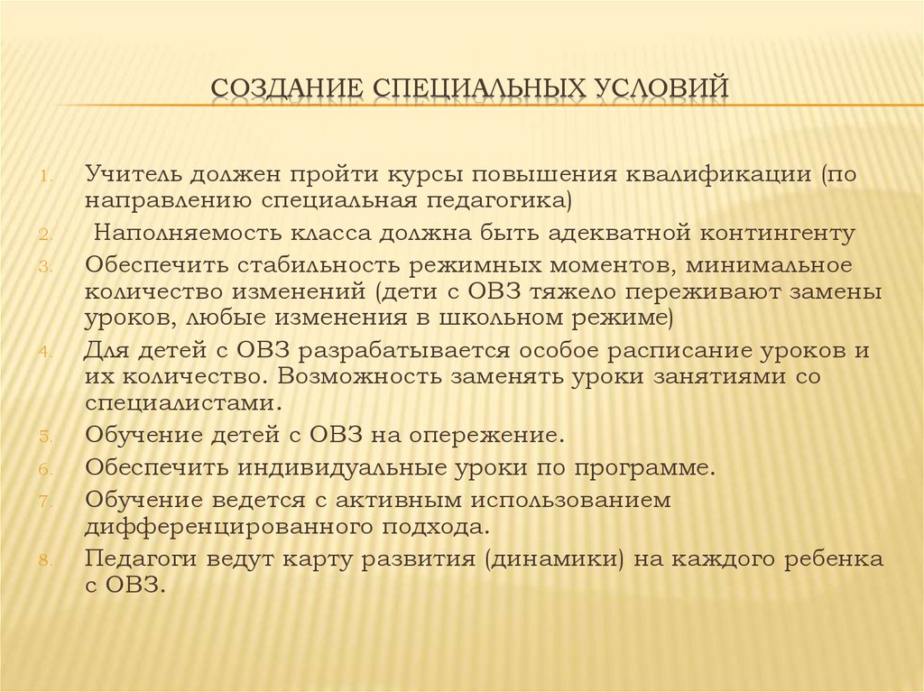 СОЗДАНИЕ СПЕЦИАЛЬНЫХ УСЛОВИЙ1.
