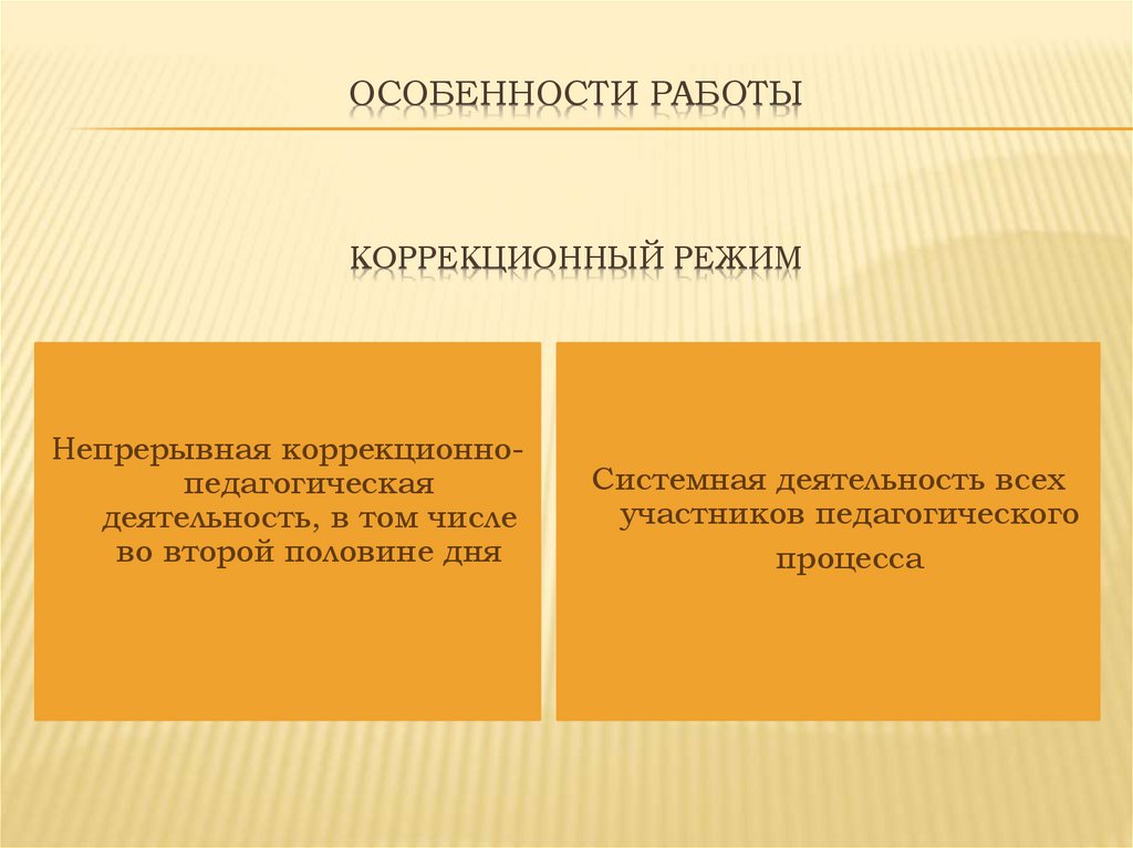 ОСОБЕННОСТИ РАБОТЫКОРРЕКЦИОННЫЙ РЕЖИМ