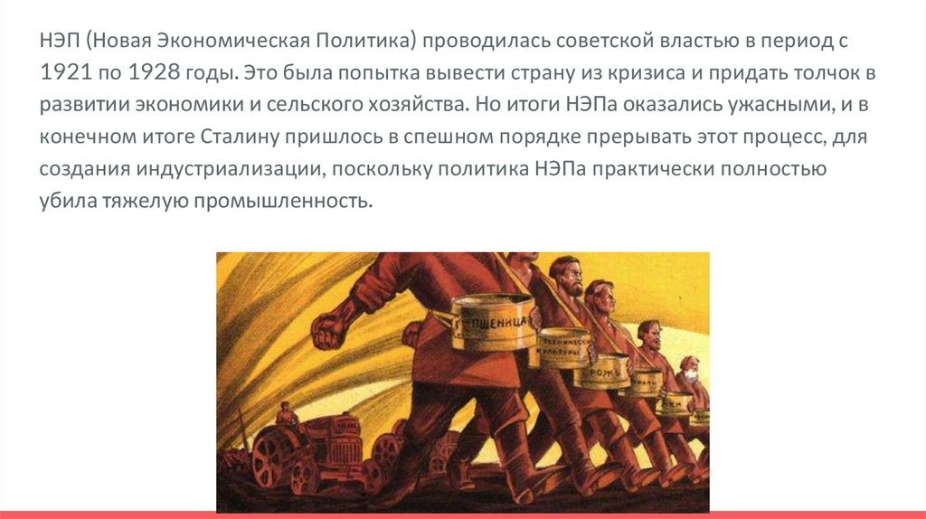 развитии экономики и сельского хозяйства. Но итоги НЭПа оказались ужасными, и в