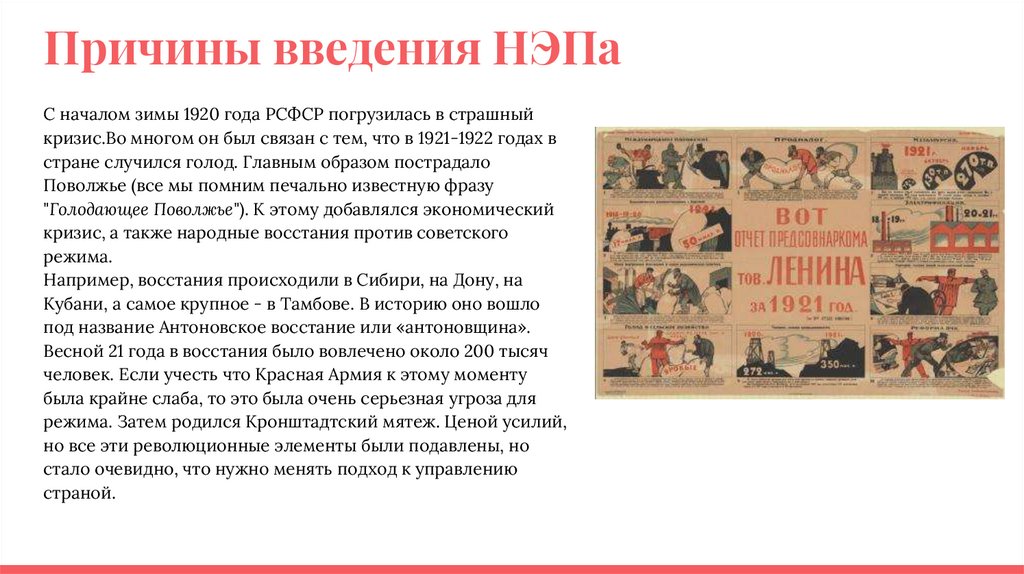 Причины введения НЭПаС началом зимы 1920 года РСФСР погрузилась в страшный