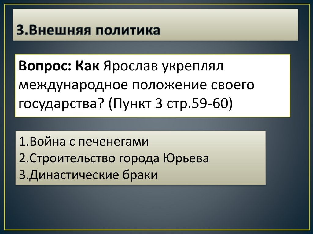 Вопрос: Как Ярослав укреплялмеждународное положение своего