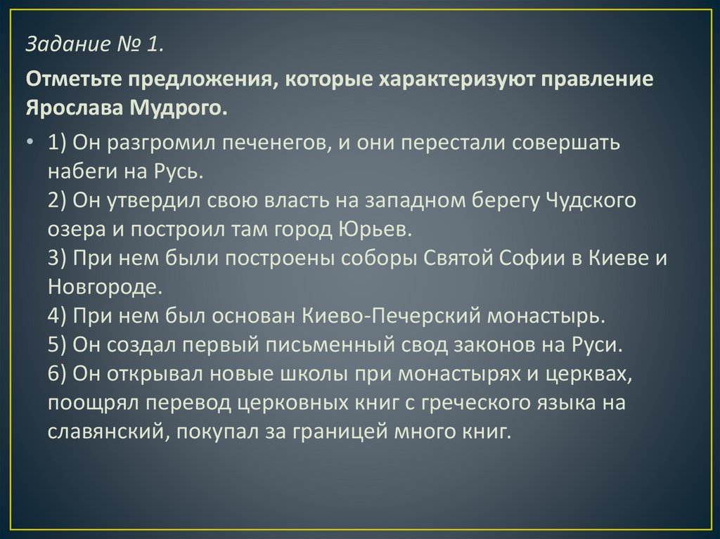 Задание № 1.Отметьте предложения, которые характеризуют правление