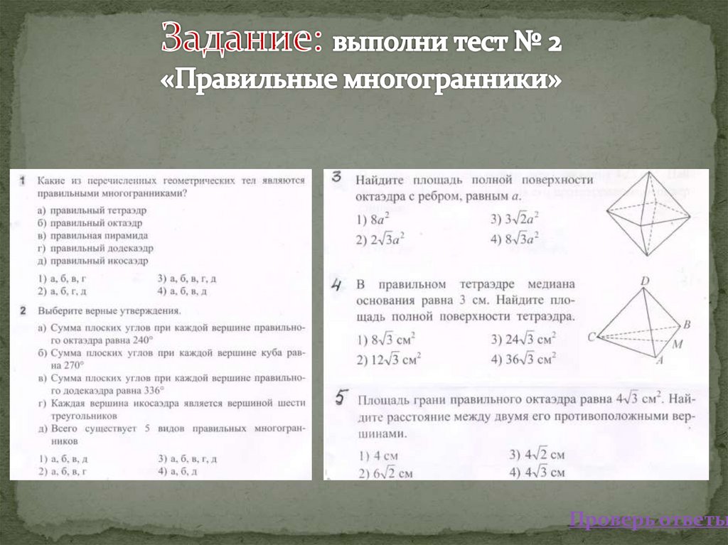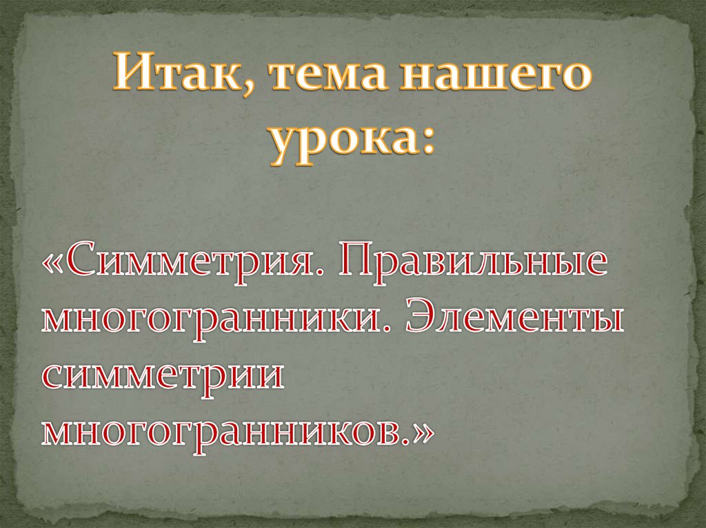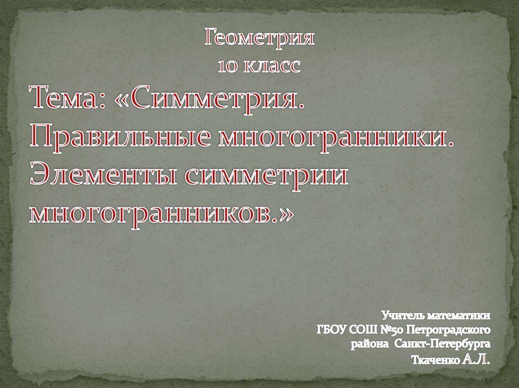 Симметрия. Правильные многогранники. Элементы симметрии многогранников. 10 класс