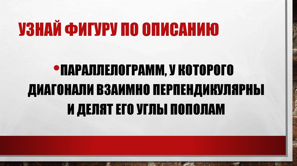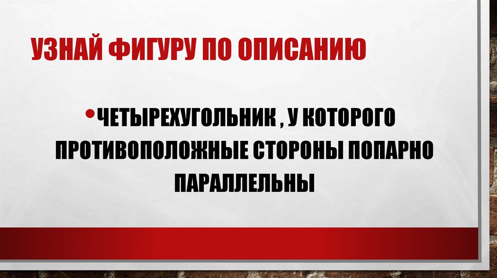 УЗНАЙ ФИГУРУ ПО ОПИСАНИЮ•ПАРАЛЛЕЛОГРАММ, У КОТОРОГО