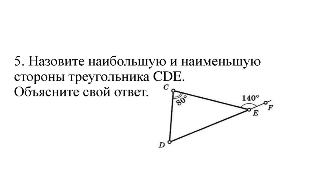 5. Назовите наибольшую и наименьшуюстороны треугольника CDE.