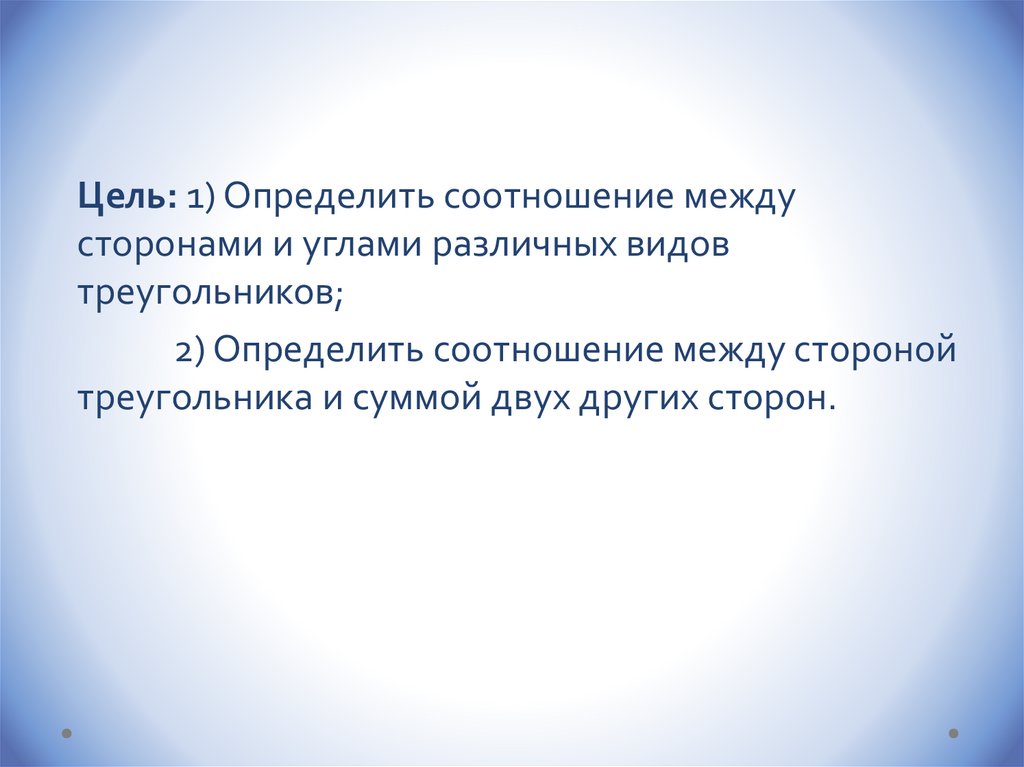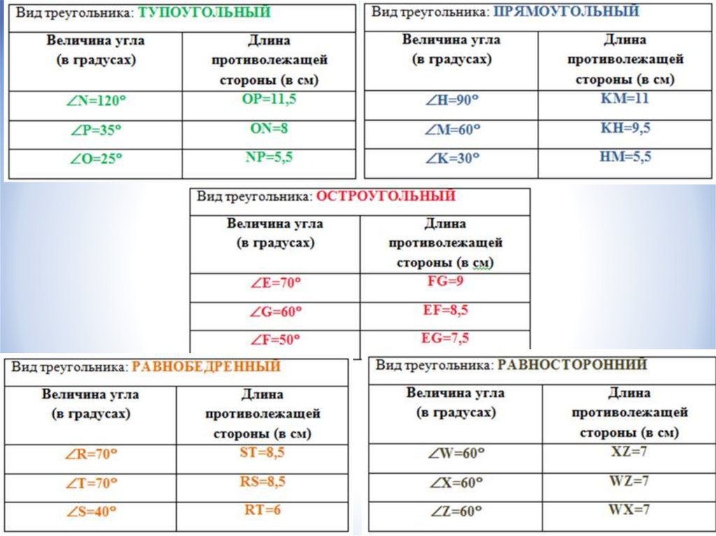 Цель: 1) Определить соотношение междусторонами и углами различных видов