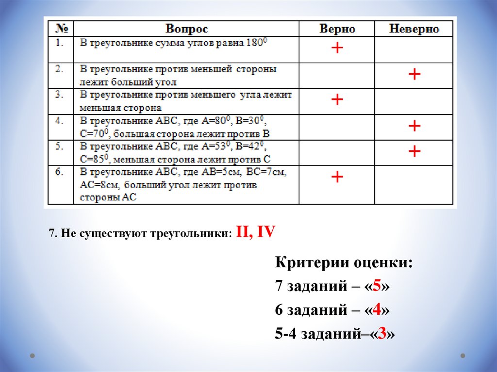 4) Сделать вывод о соотношение углов и сторон треугольника.