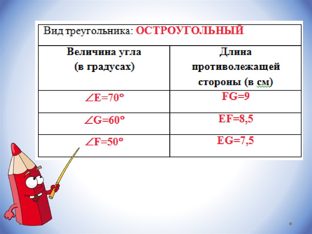 3) Сравнить углы и соответствующие им противолежащие стороны