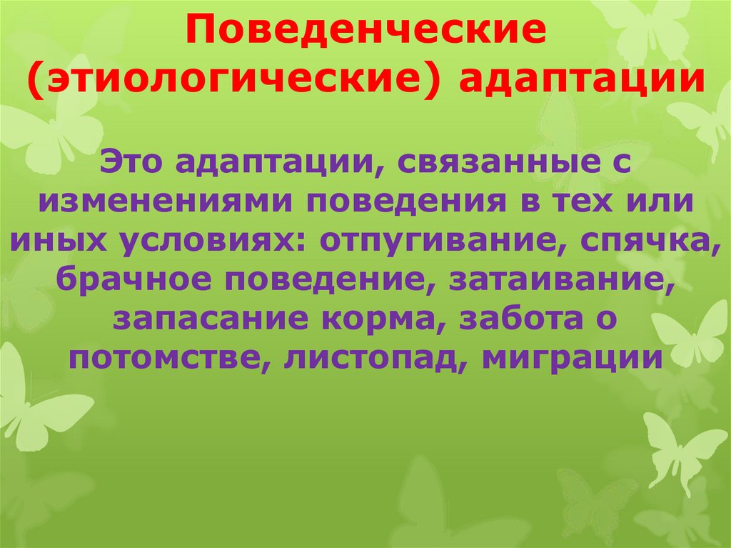 Поведенческие(этиологические) адаптации