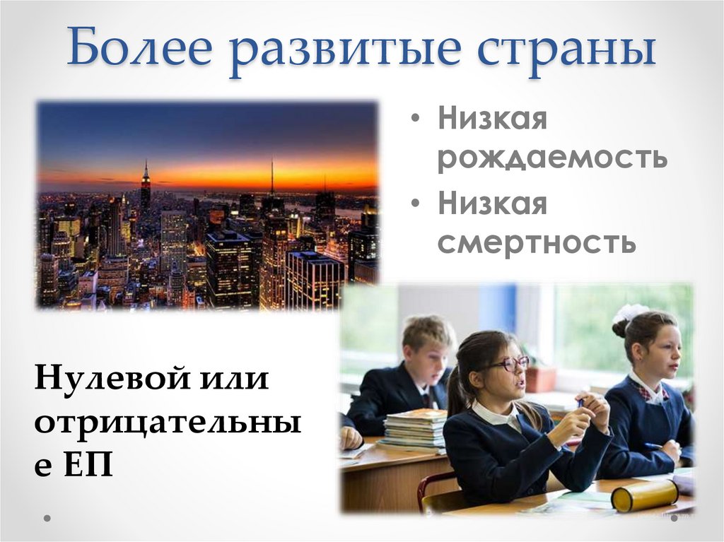 Более развитые страны• Низкая