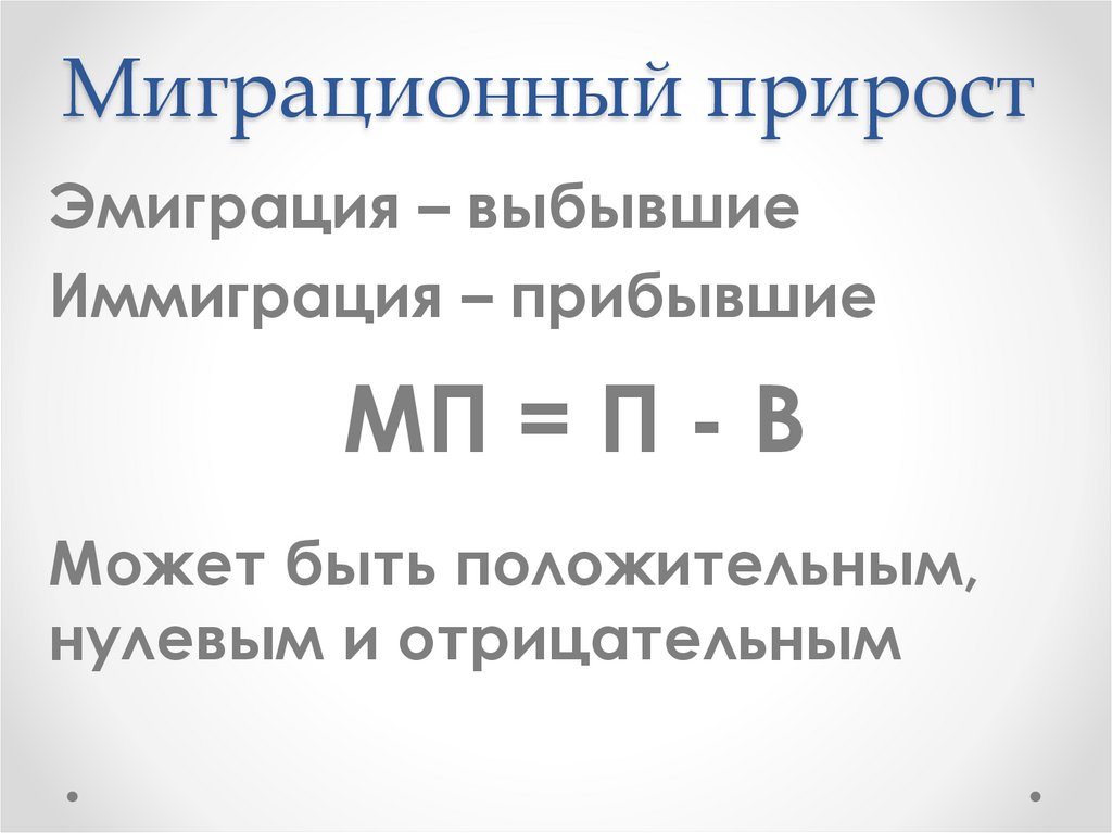 Миграционный приростЭмиграция – выбывшие