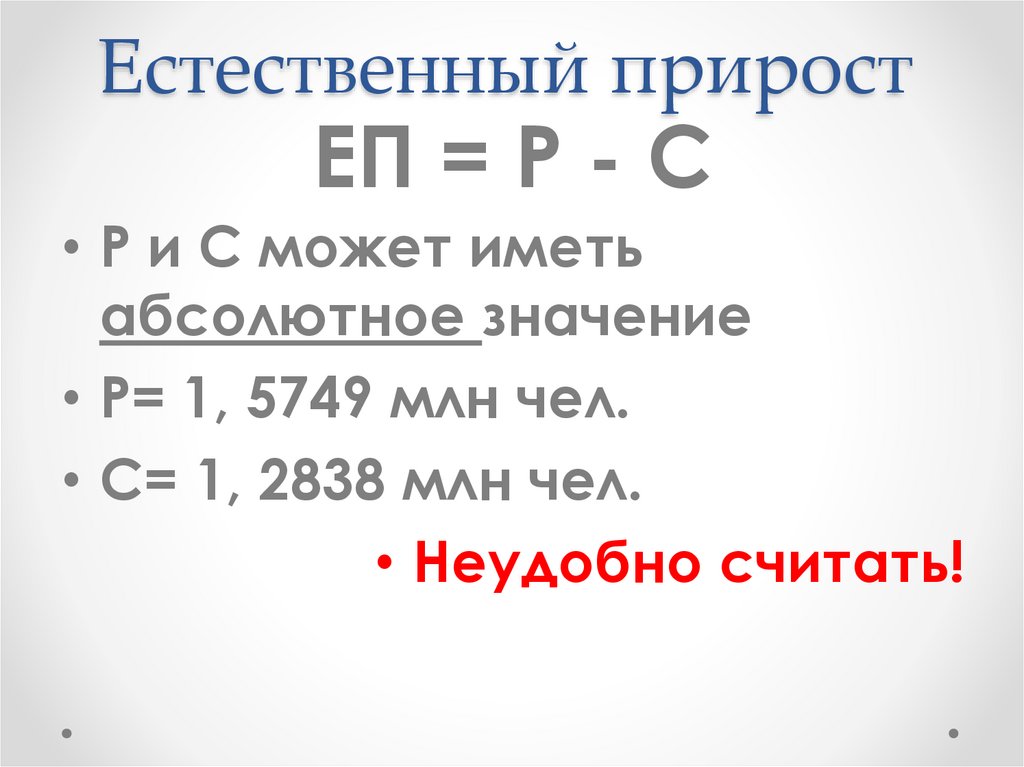 Естественный приростЕП = Р - С