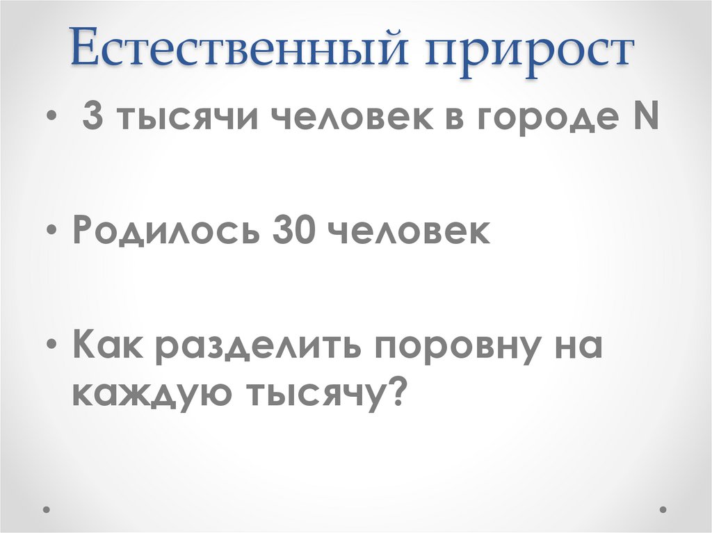 Естественный прирост• 3 тысячи человек в городе N