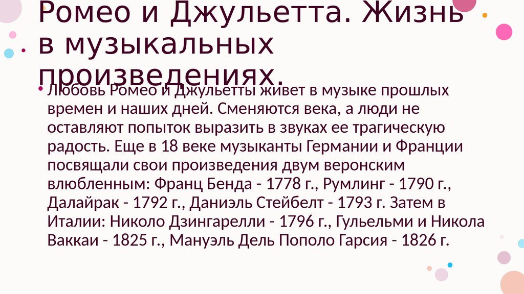 • Любовь Ромео и Джульетты живет в музыке прошлых