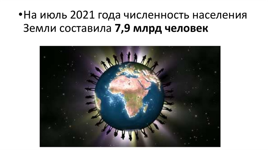 •На июль 2021 года численность населенияЗемли составила 7,9 млрд человек