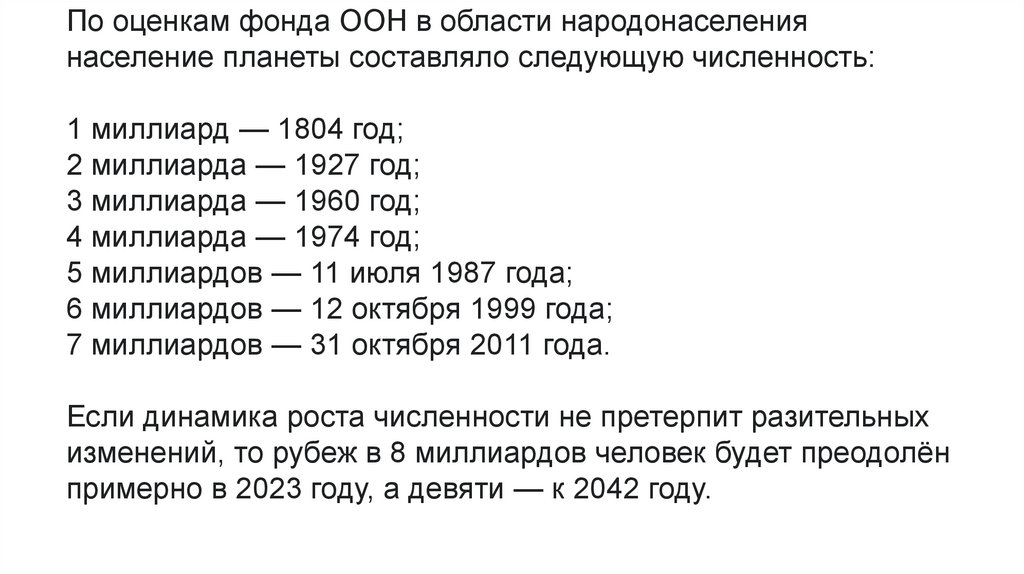 изменений, то рубеж в 8 миллиардов человек будет преодолён