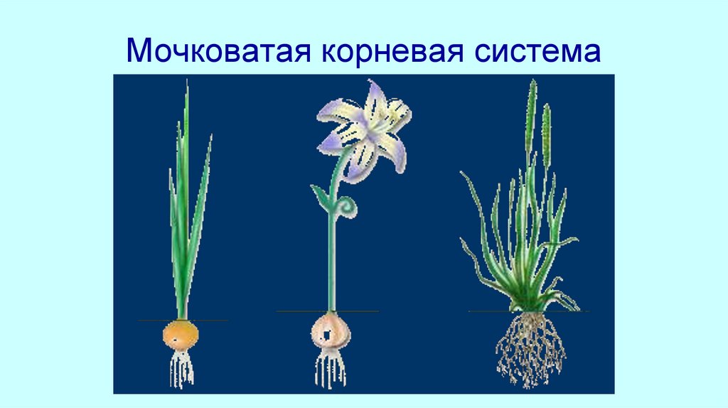 имеются 3-5 одинаковых нитевидных корней, среди которых главный