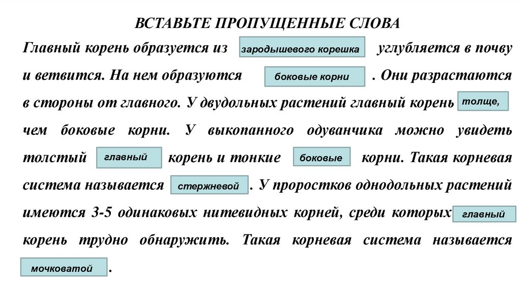 ВСТАВЬТЕ ПРОПУЩЕННЫЕ СЛОВАГлавный корень образуется из
