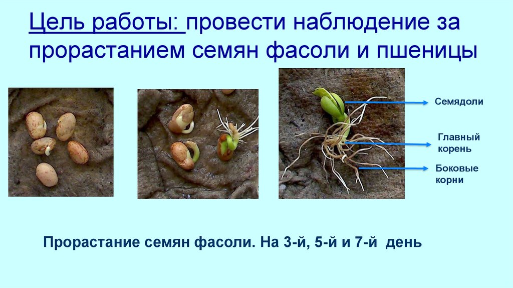 Цель работы: провести наблюдение запрорастанием семян фасоли и пшеницы