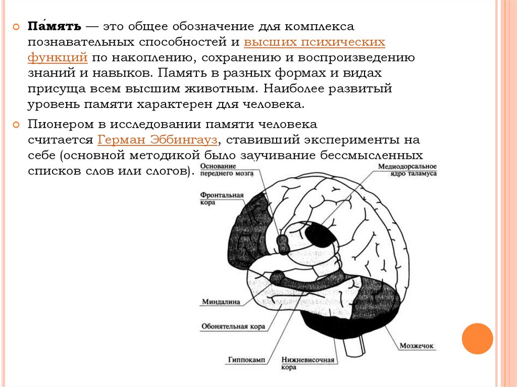 Па́мять — это общее обозначение для комплексапознавательных способностей и высших психических