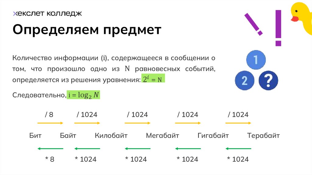 Определяем предметКоличество информации (i), содержащееся в сообщении о