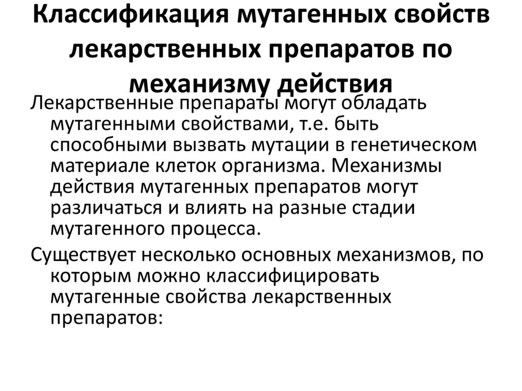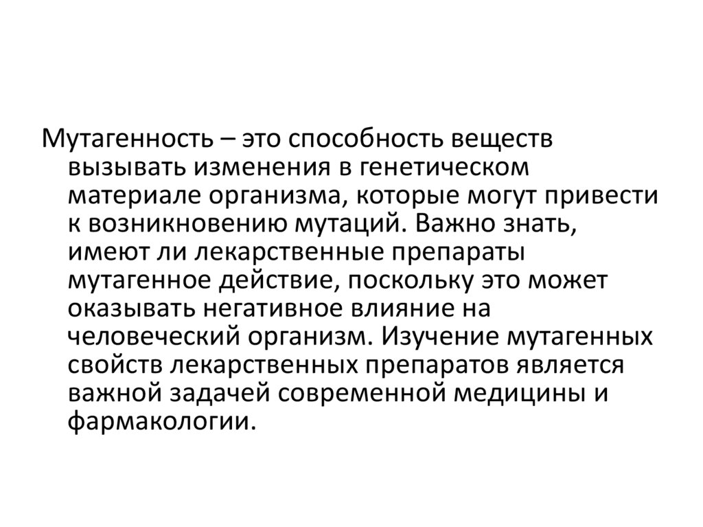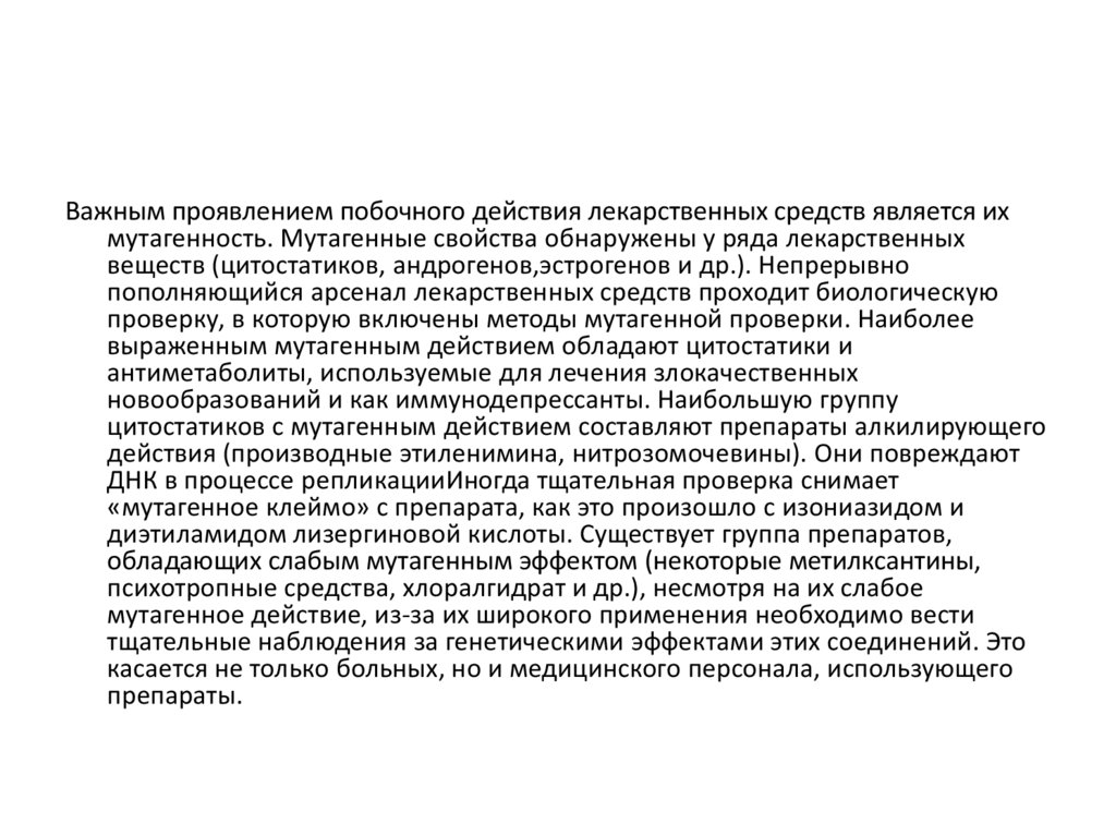 Важным проявлением побочного действия лекарственных средств является ихмутагенность. Мутагенные свойства обнаружены у ряда лекарственных