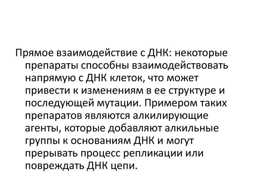 Прямое взаимодействие с ДНК: некоторыепрепараты способны взаимодействовать
