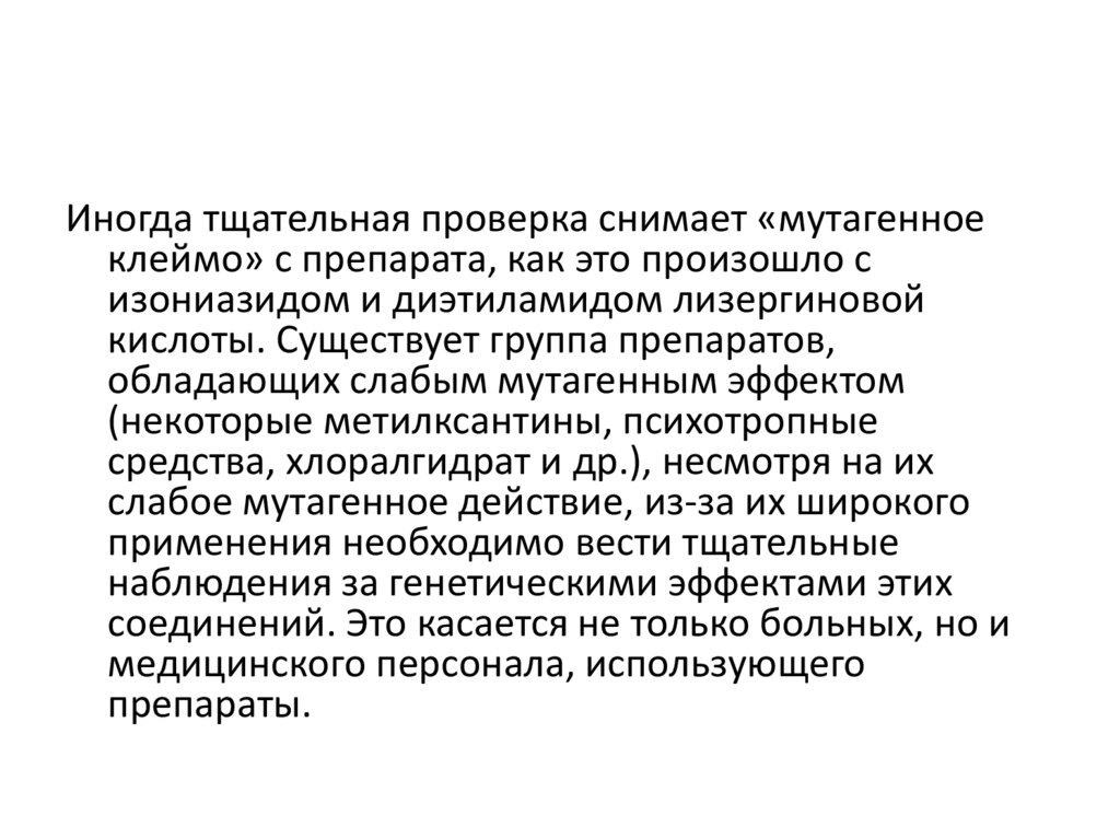 Иногда тщательная проверка снимает «мутагенноеклеймо» с препарата, как это произошло с