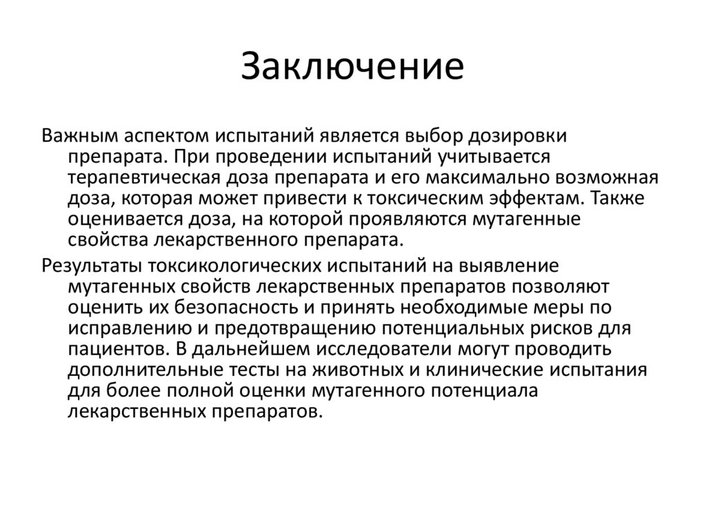 ЗаключениеВажным аспектом испытаний является выбор дозировки