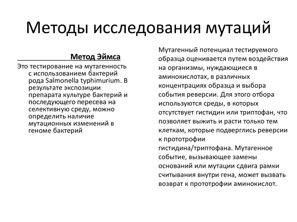 проверку, в которую включены методы мутагенной проверки. Наиболее