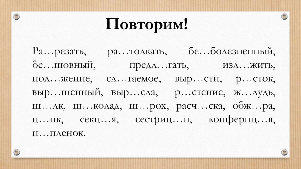 ш…лк, ш…колад, ш…рох, расч…ска, обж…ра,