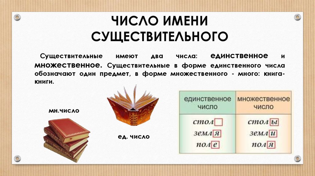 обозначают один предмет, в форме множественного - много: книгакниги.