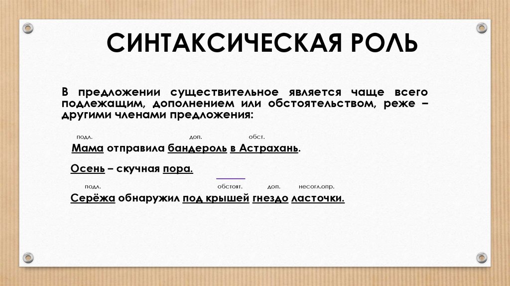 СИНТАКСИЧЕСКАЯ РОЛЬВ предложении существительное является чаще всего