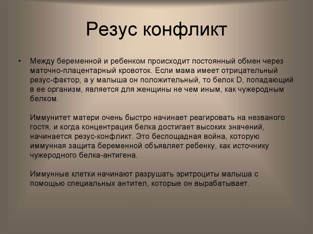 Резус конфликтМежду беременной и ребенком происходит постоянный обмен через