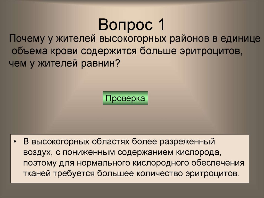 Вопрос 1Почему у жителей высокогорных районов в единице