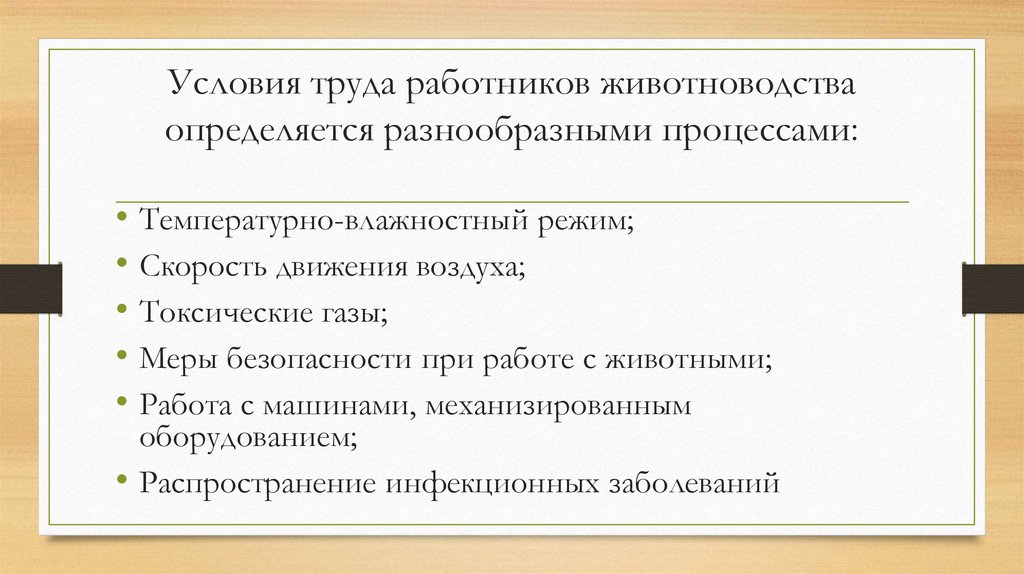 Условия труда работников животноводстваопределяется разнообразными процессами: