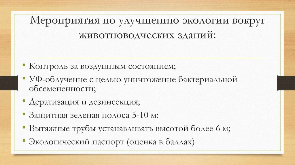 Мероприятия по улучшению экологии вокругживотноводческих зданий:
