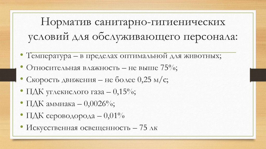 Норматив санитарно-гигиеническихусловий для обслуживающего персонала: