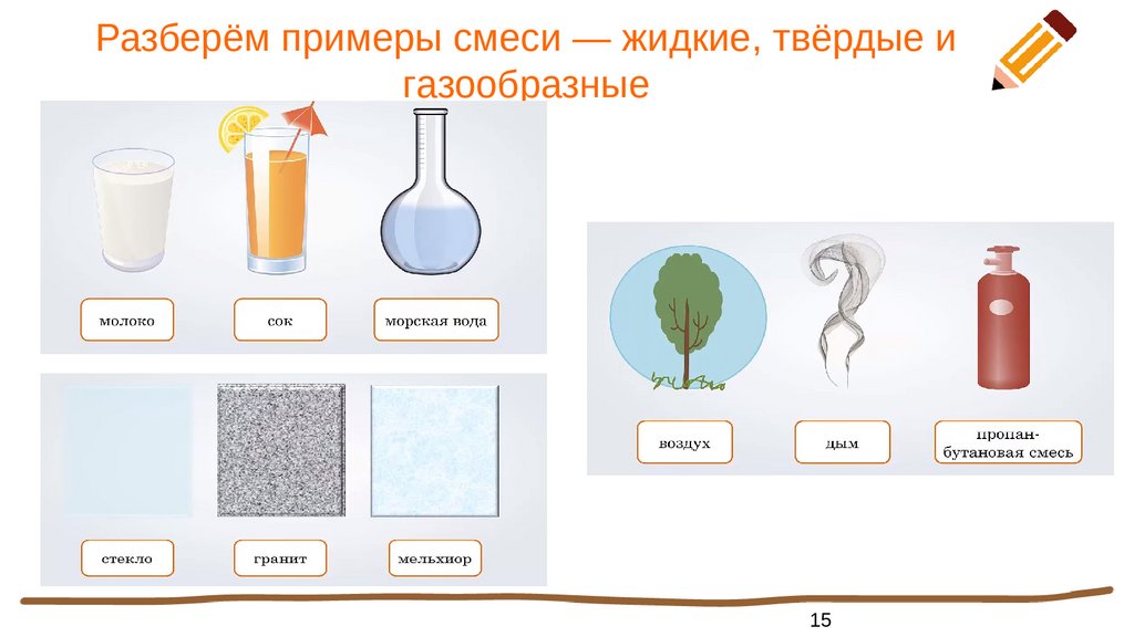 Разберём примеры смеси — жидкие, твёрдые игазообразные