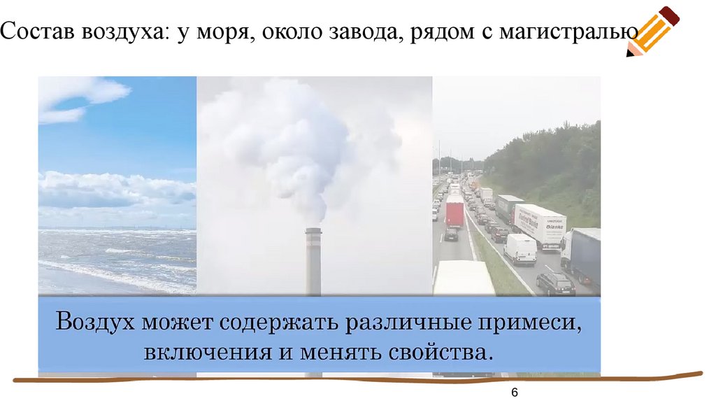Состав воздуха: у моря, около завода, рядом с магистралью6