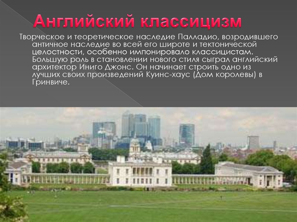 Творческое и теоретическое наследие Палладио, возродившегоантичное наследие во всей его широте и тектонической