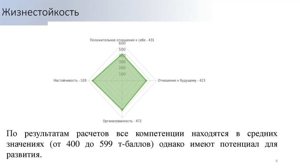 ЖизнестойкостьПо результатам расчетов все компетенции находятся в средних