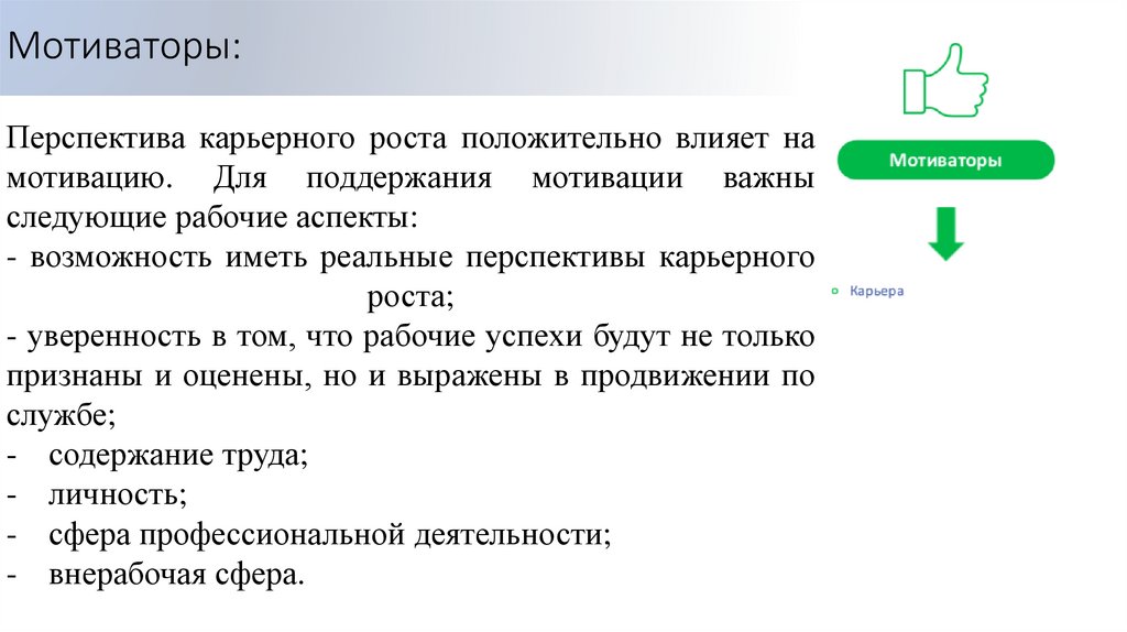 Мотиваторы:Перспектива карьерного роста положительно влияет на