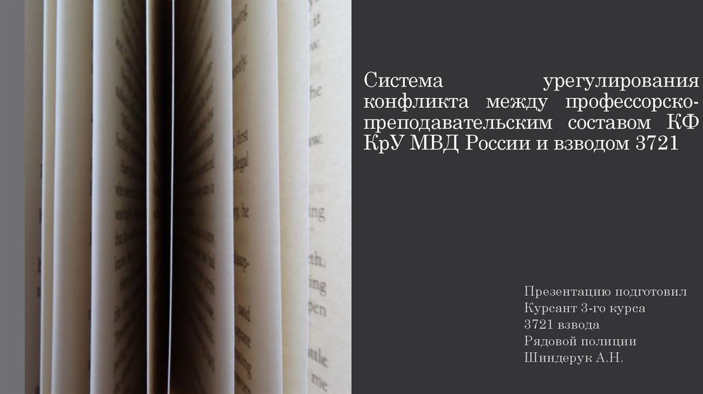 Система урегулирования конфликта между профессорско-преподавательским составом КФ КрУ МВД России и взводом 3721
