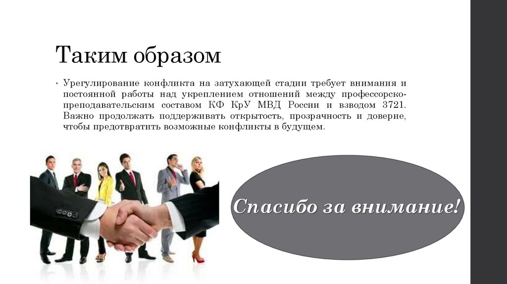 Таким образом• Урегулирование конфликта на затухающей стадии требует внимания и