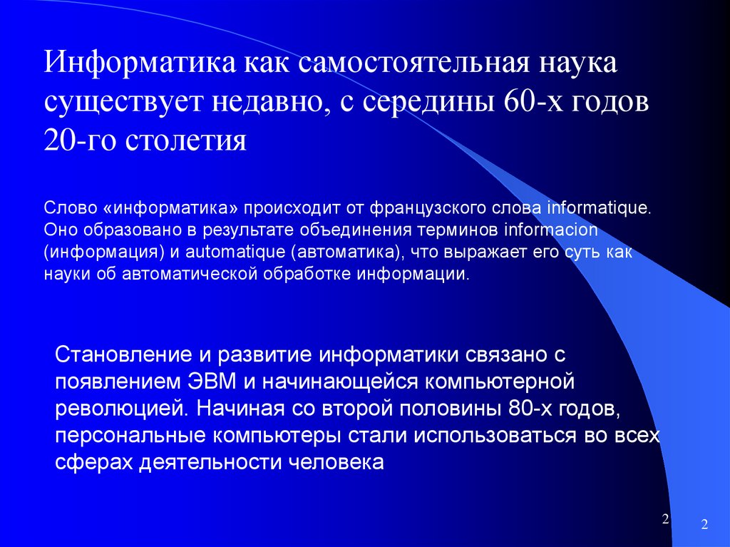Слово «информатика» происходит от французского слова informatique.