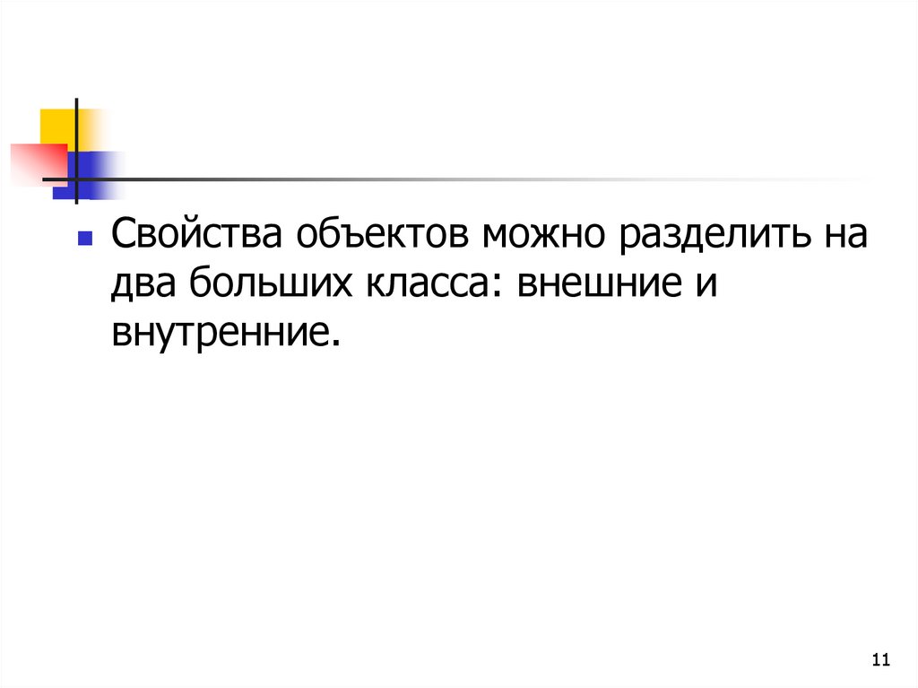 Свойства объектов можно разделить надва больших класса: внешние и