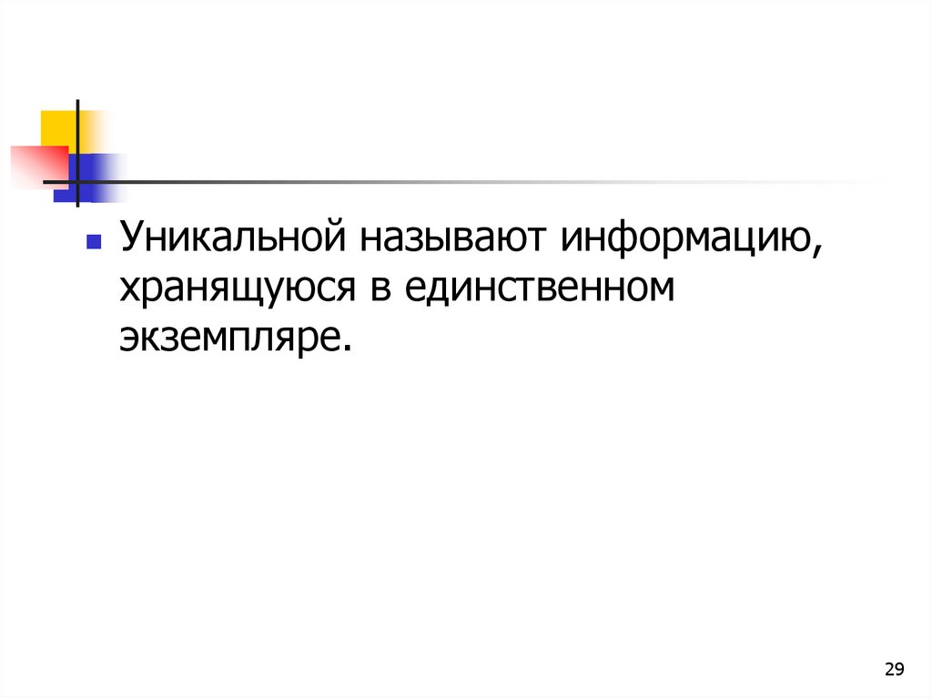 Уникальной называют информацию,хранящуюся в единственном