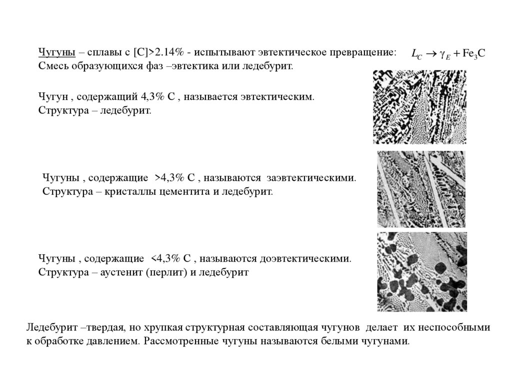 Чугуны , содержащие >4,3% С , называются заэвтектическими.