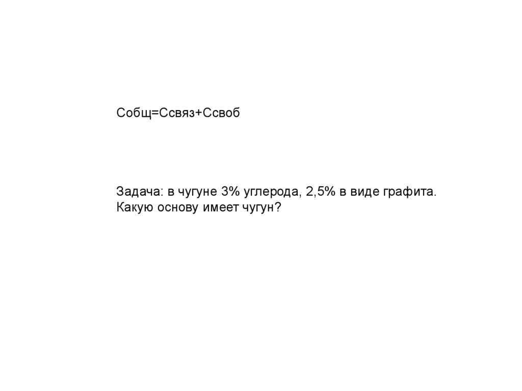 Собщ=Ссвяз+СсвобЗадача: в чугуне 3% углерода, 2,5% в виде графита.
